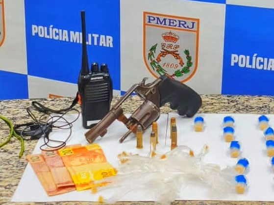 Um adolescente de 15 anos foi apreendido portando uma arma e traficando drogas, na noite da quinta-feira (16), na Rua Rio Grande do Sul, na Vila Coringa, em Barra Mansa. Com ele foram apreendidos um revólver calibre 38 com cinco munições intactas e um rádio transmissor, além de dois pinos de cocaína, uma munição de calibre 380 e R$ 40.