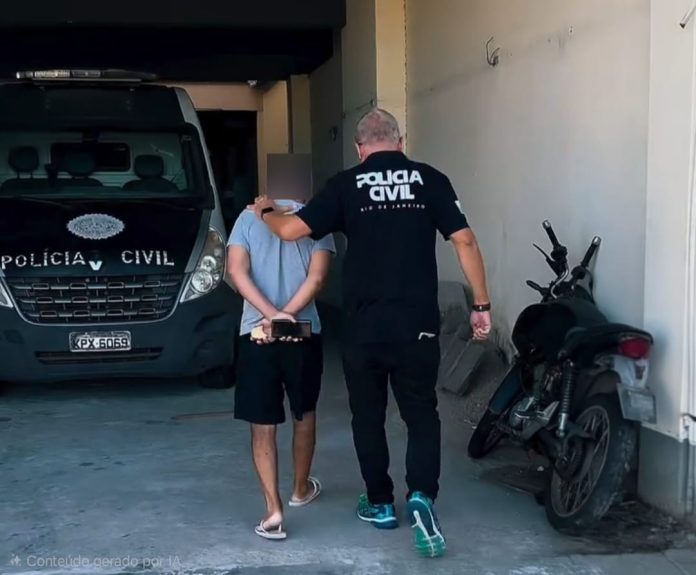 A prisão ocorreu por volta das 7h, mas o bairro não foi informado. Contra ele, foi expedido um mandado de prisão pelo Juizado da Violência Doméstica e Familiar da cidade. A investigação optou pela prisão preventiva do acusado. (Foto: Polícia Civil)