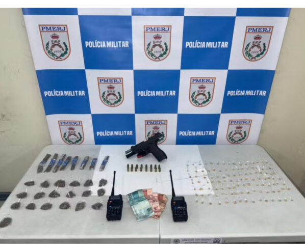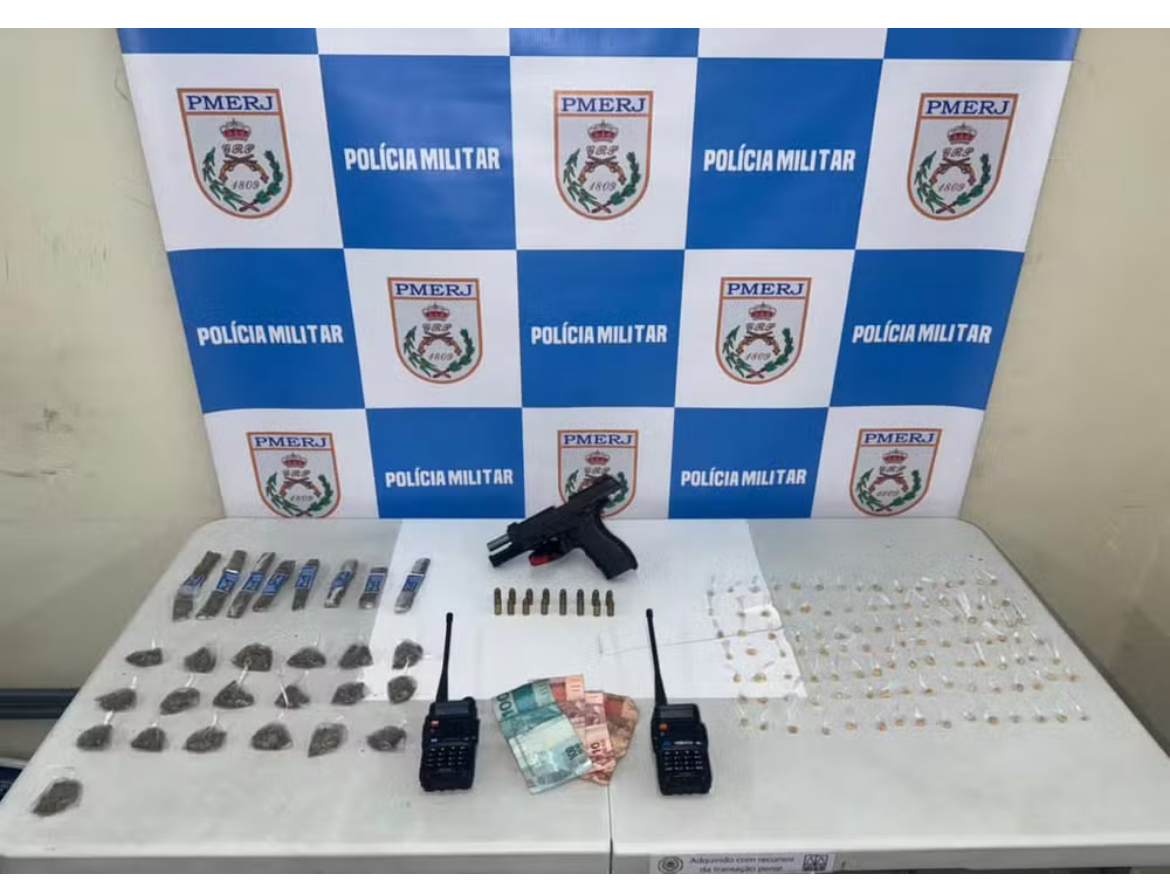 Ainda de acordo com a PM, durante a abordagem foi encontrado com eles uma pistola calibre .380, 111 pedras de crack, 27 embalagens de maconha, um carregador, 16 munições intactas, dois rádios comunicadores e R$ 130 em espécie.