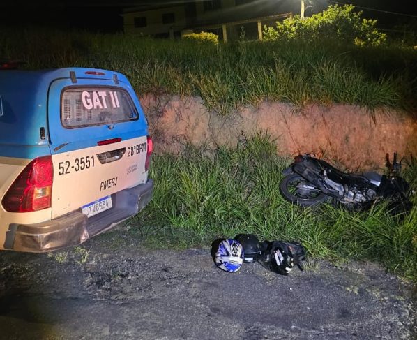 Segundo a PM, no momento em que foi abordada, a dupla estava em outra moto, modelo CG 160 Start. Eles não obedeceram à ordem de parada e tentaram fugir, mas acabou batendo na viatura policial e caindo. No entanto, se levantaram e tentaram fugir mais uma vez. Um dos suspeitos, de acordo com a PM, colocou a mão na cintura, dando a entender que iria sacar o revólver que portava, o que fez um dos policiais atirar com um fuzil, sem atingi-lo. Ele gritou “perdi”, soltou a arma e a dupla se rendeu.