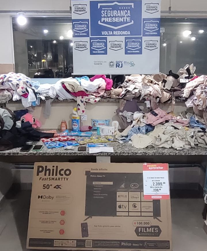 Durante a abordagem, os agentes encontraram no veículo uma grande quantidade de mercadorias com etiquetas de lojas conhecidas da cidade. Entre os itens apreendidos estavam roupas, chocolates, pacotes de doces e produtos de cama e banho. Um funcionário de um dos estabelecimentos reconheceu os produtos como sendo do seu comércio.