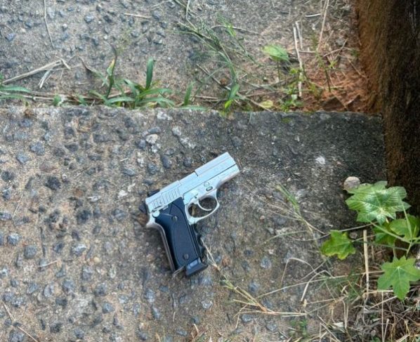 Nas buscas feitas no local, os policiais apreenderam uma pistola com numeração raspada, que teria sido abandonada pelo criminoso durante a fuga.