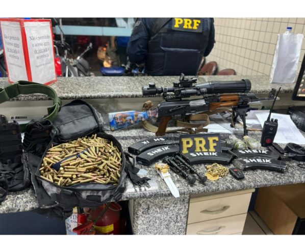 Após o acidente, os agentes chegaram ao homem e fizeram uma vistoria no carro, onde encontraram um fuzil AK-47, oito carregadores, 616 munições de calibre 7.62, cinco porta-carregadores, dois bipés, duas granadas, uma mira telescópica, um radiotransmissor com base e duas baterias e um cinto tático. Ainda foram apreendidos um celular, uma mochila com R$ 40, uma corrente com pingente dourada e um relógio.
