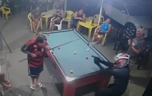 Imagens de câmeras de segurança do estabelecimento registraram o crime. A vítima aparece jogando sinuca, com outras 11 pessoas ao redor, até que um homem vestido de preto e usando capacete entra no local e atira quatro vezes à queima-roupa contra a vítima, que cai, enquanto as demais pessoas correm, em desespero. O assassino fugiu em seguida.