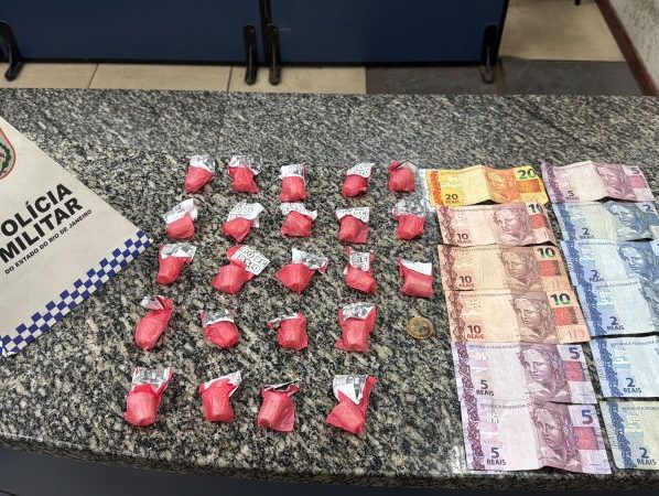 A ação teve início após denúncia sobre movimentação suspeita relacionada ao tráfico de drogas na localidade. Durante a abordagem, o acusado de 19 anos, após tentativa de fuga, jogou uma sacola sobre o telhado de uma loja. Com ele, foram encontrados R$ 80 em dinheiro e, ao fazerem buscas no local, os policiais apreenderam 23 eppendorfs de cocaína.
