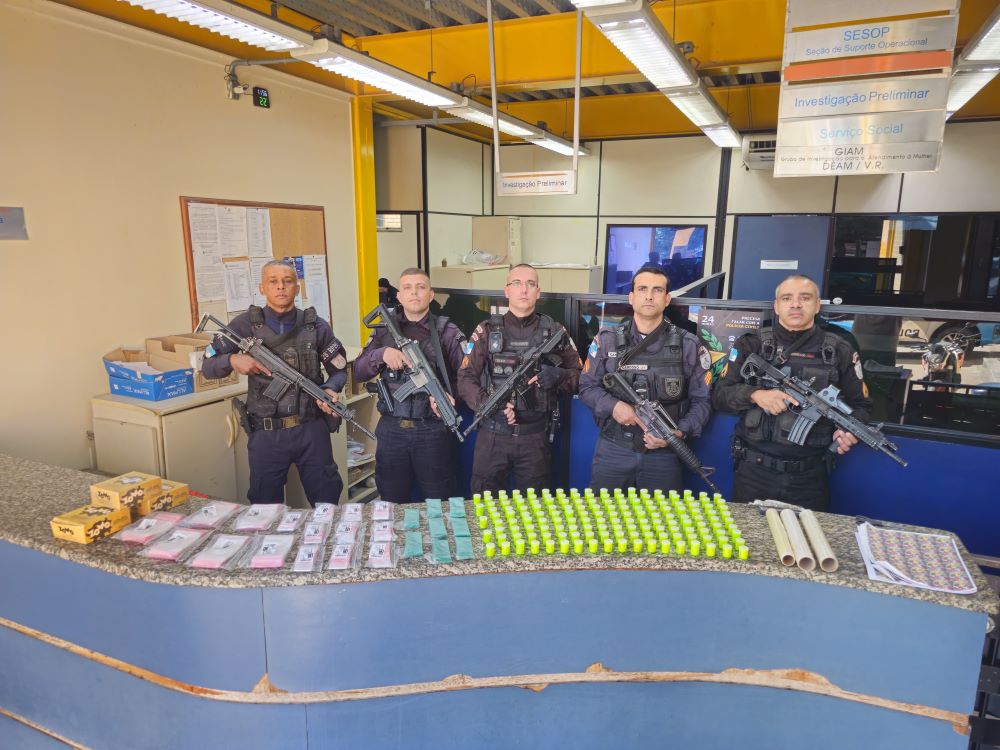 Todo o material foi encaminhado à 90ª Delegacia de Polícia, onde a ocorrência permanecia em andamento até o início da tarde. Nenhum suspeito foi preso.