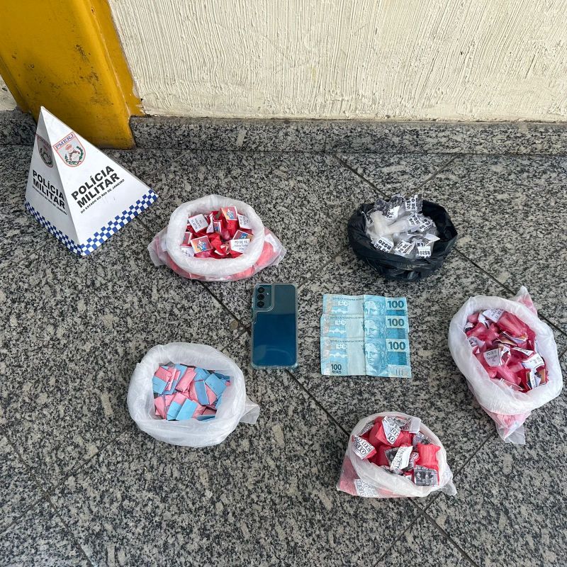 Na ação, foram apreendidos 245 pinos e 34 invólucros de cocaína, além da quantia em dinheiro de R$ 300 e um celular.