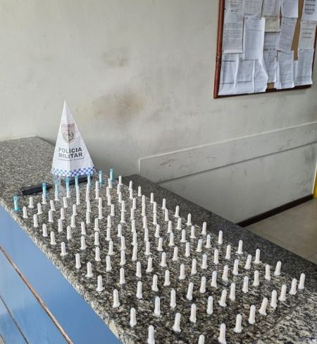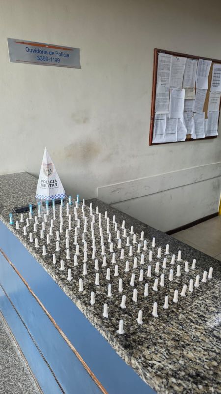 Ao realizarem a verificação no interior do objeto, os policiais encontraram 137 eppendorfs contendo cocaína, totalizando aproximadamente 205 gramas da droga, além de duas baterias de rádio comunicador.
