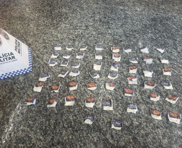 Após buscas em uma área de mata, com apoio de agentes de segurança, os policiais localizaram 50 sacolés de cocaína, totalizando cerca de 94 gramas da substância.