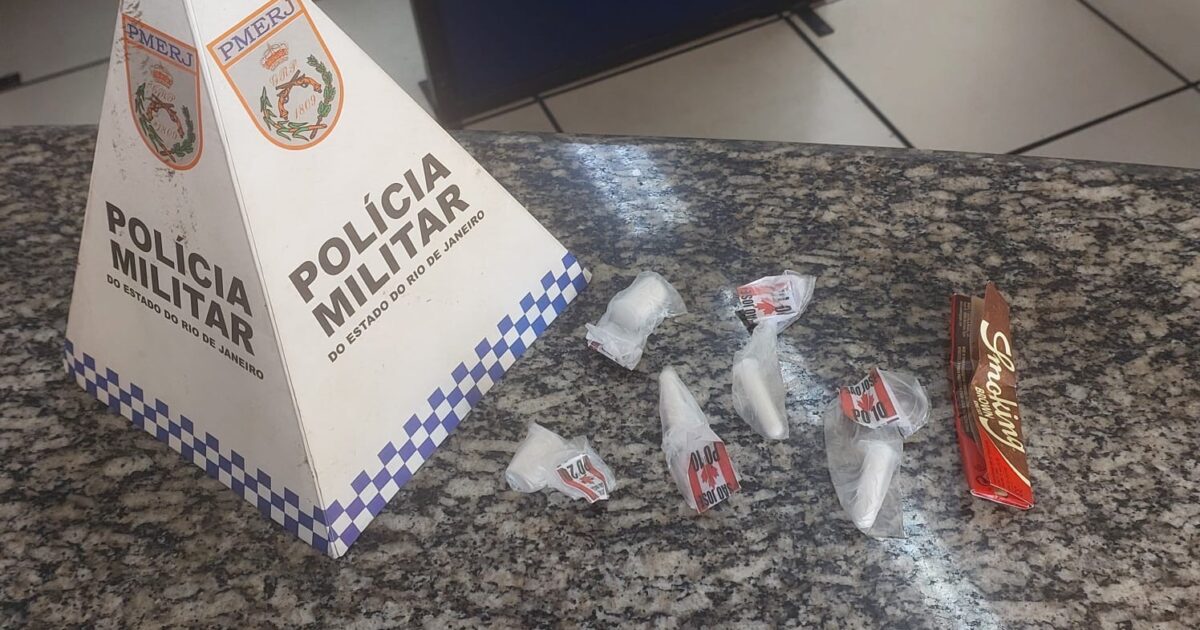 Durante a vistoria no automóvel, os agentes encontraram cinco pinos de cocaína — dois com carga maior e três menores — totalizando aproximadamente 14 gramas da substância.